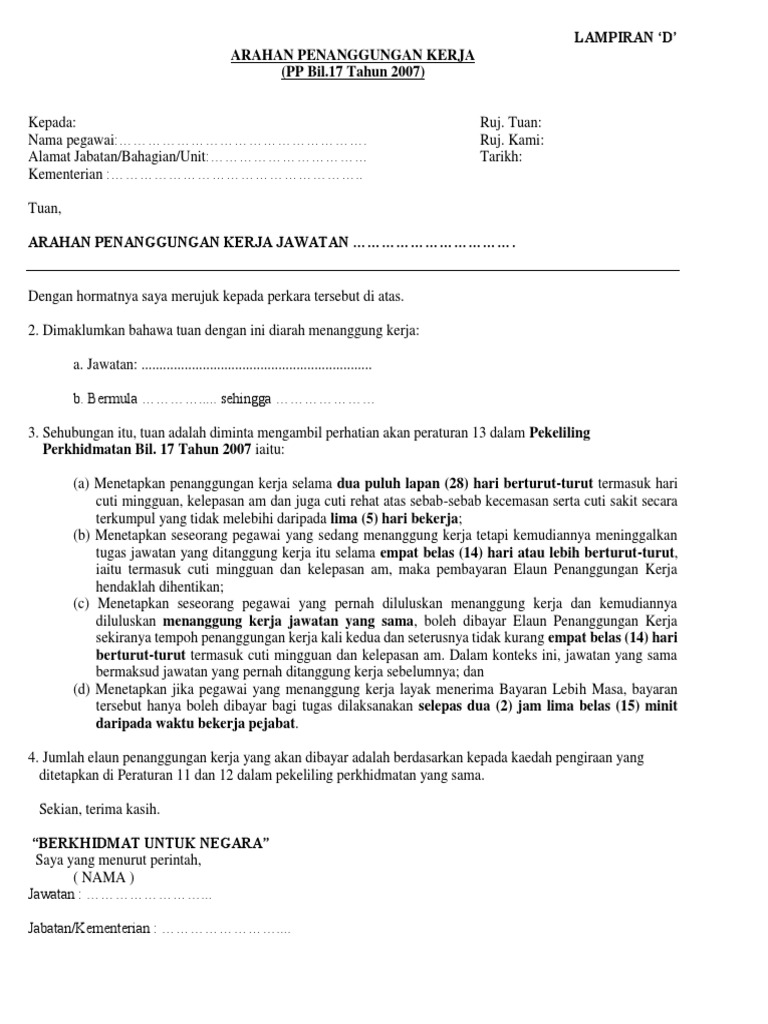 . Contoh surat arahan menanggung kerja. B Jawatan dan Gred yang hendak ditanggung. 11 17 2009 10 01 29 am.