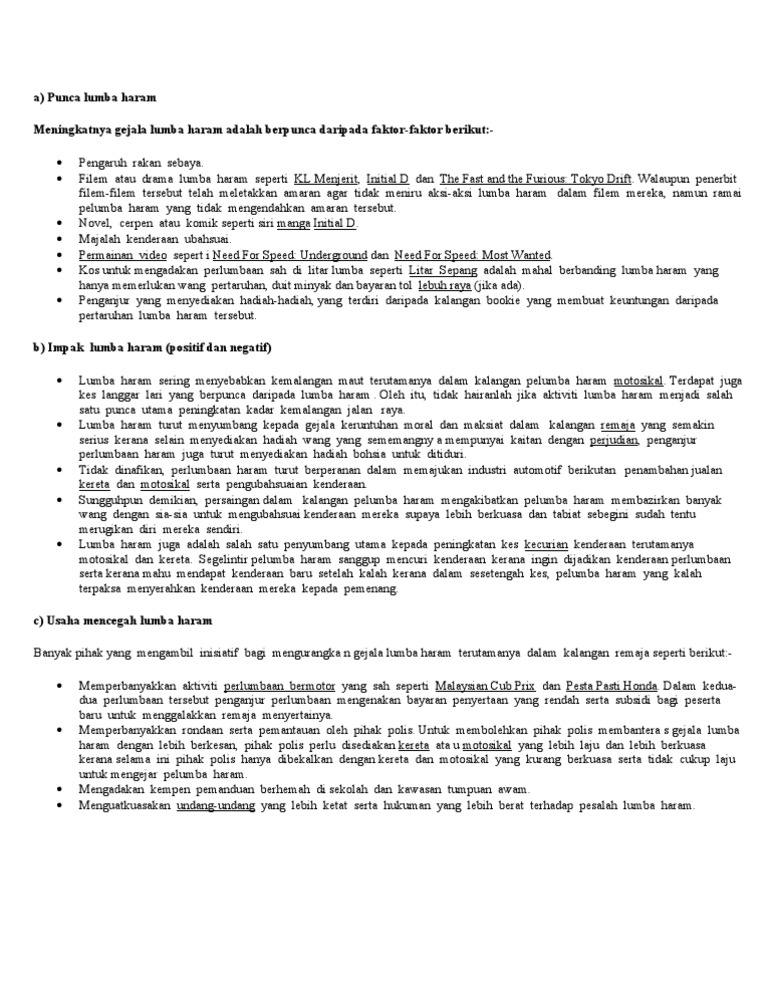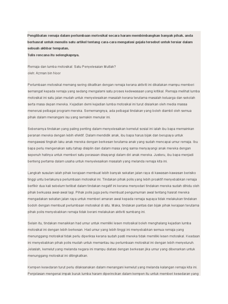 Karangan Wawancara Anak Muda Terlibat Dalam Perlumbaan Motosikal Haram Karangan Bahasa Melayu Pmr